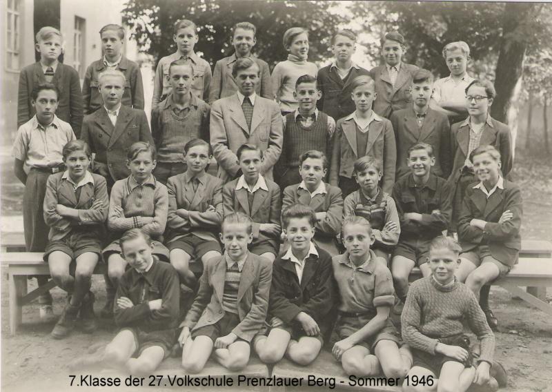 Klassenfoto und Zeugnis der 7. Klasse der 27. Volksschule im Sommer 1946